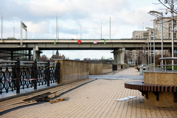 Впрочем, есть в Калининграде места куда больших инфраструктурных страданий. Например, несчастная набережная Трибуца, которая тяжело «болеет» с самого рождения. Ей долго не могли найти подрядчика, потом их несколько раз меняли, взявшиеся за контракт фирмы банкротились, сдали ее с отставанием — и к моменту завершения второй очереди первую уже нужно было ремонтировать. Потом там произошло два масштабных потопа из-за прорванных труб, но с горем пополам к Чемпионату мира 2018 года работы завершить успели. Все это не могло не сказаться на общем самочувствии «пациента». К настоящему времени оно таково, что пора вызывать реанимационную бригаду — это хорошо видно по снимкам, которые сделал фотокорреспондент «Нового Калининграда» Виталий Невар. Горвласти, кстати, заказали диагностику (она идет) и обещают операцию — правда, ее ждать стоит в лучшем случае через год.