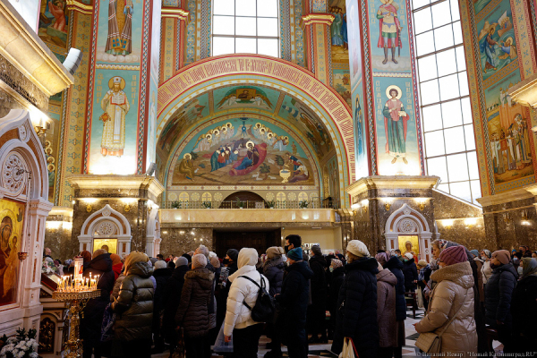 Из-за эпидемической ситуации, которая не может разрешиться вот уже два года, РПЦ рекомендовала призвала отказаться от традиционных крещенских купаний, но праздничные службы всё же состоялись по всей стране. В Калининграде божественная литургия прошла в том числе в Храме Христа Спасителя на площади Победы. Церкви так и не стали зоной ковид-фри — кьюар-код на входе никто не требует, а вот медицинские маски надевать всё же приходится. За религиозным массовым мероприятием наблюдал фотокорреспондент «Нового Калининграда» Виталий Невар.