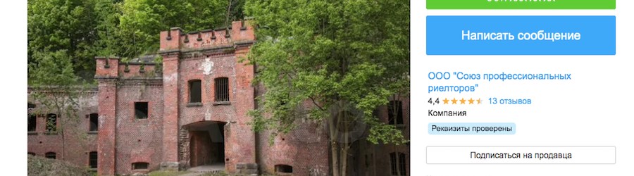 Кому форт? Форт № 2 «Бронзарт» в Малом Васильково под Калининградом снова выставили на продажу на «Авито». Владельцы хотят за памятник архитектуры 150 млн рублей. «Создай свою концепцию крупнейшего культурно-туристического комплекса Калининградской области. Уникальное сооружение военно- инженерного искусства может стать вашим уже сегодня! <...> Стань Великой историей нашего времени», — говорится в сообщении, опубликованном от имени продавца. Это не первая попытка продать «Бронзарт», ранее собственник хотел за него 75 млн рублей, но, видимо, посмотрел на ситуацию на рынке недвижимости и решил немного поднять цену.