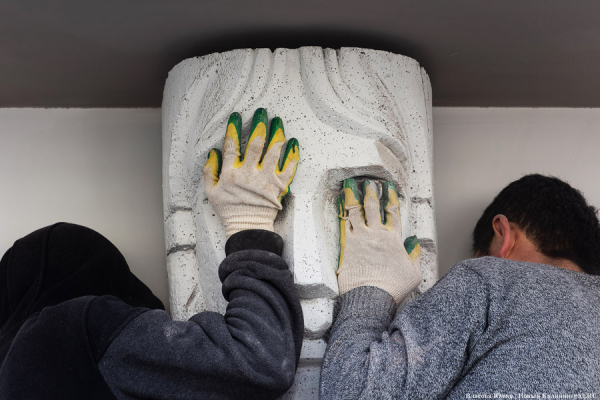 На фасаде дома № 53-55 на проспекте Мира установили горельефы из фибробетона, посвящённые первым переселенцам в Калининградскую область. Они изображают железнодорожника, инженера, колхозницу и моряка. Идея принадлежит региональному Фонду капремонта, эскизы разработал калининградский художник Александр Юрицын, а скульптором выступила Наталья Чепкасова. Это редчайший на фоне засилья непропорциональных и безжизненных «невских» с «курортницами» случай действительно яркой и эмоциональной работы. С чем нас всех и поздравляем.
