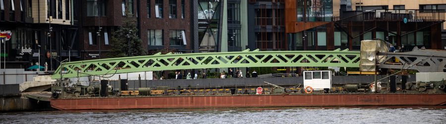 В Калининграде приступили к установке арочного пролёта Философского моста. Он должен соединить Остров Канта с ул. Виктора Гюго, где расположен спорткомплекс «Юность». Сроки завершения работ неоднократно сдвигали, в последний раз — на конец октября 2025 года. В августе региональный минкульт сообщил, что разрешение на ввод моста в эксплуатацию должно быть получено до конца 2025 года. Подробности — в фоторепортаже Юлии Власовой.