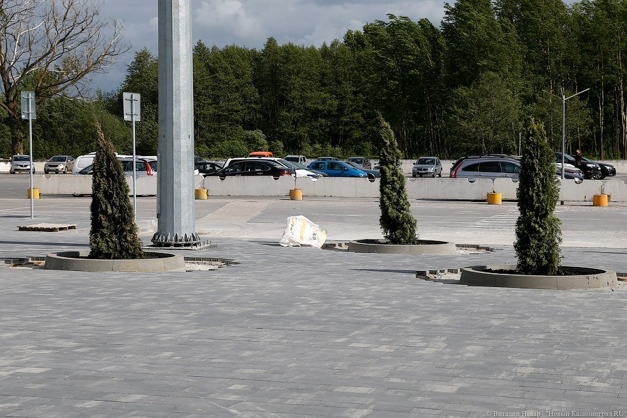 Если прогуляться вдоль бетонного забора налево, в сторону бесплатной парковки, можно обнаружить в укреплении внушительную брешь. Через нее открывается прекрасный вид на площадку перед терминалом — тяжелая техника собирает строительный мусор, рабочие скребут лопатами дорожки в тщетных поисках благоустройства, фасад украшают гроздья промышленных альпинистов.