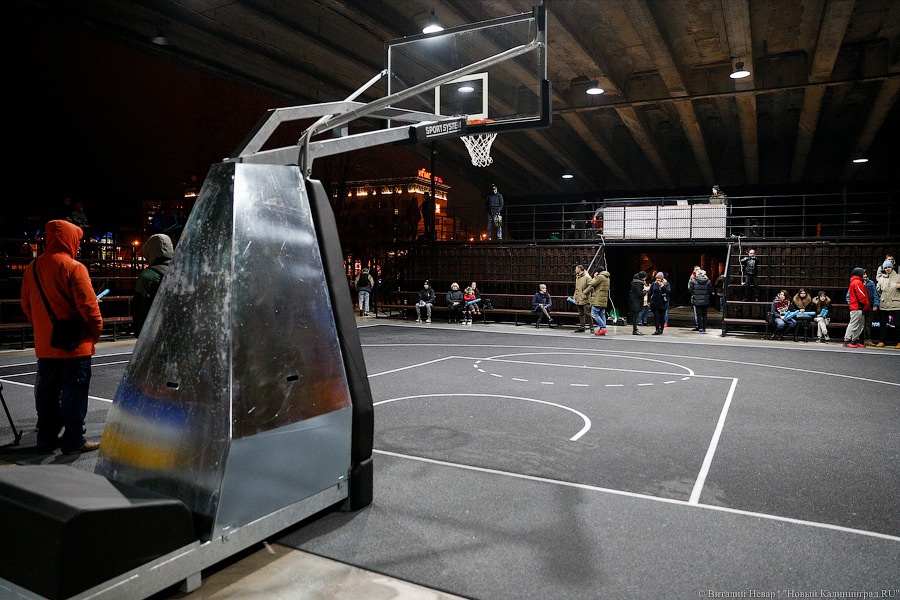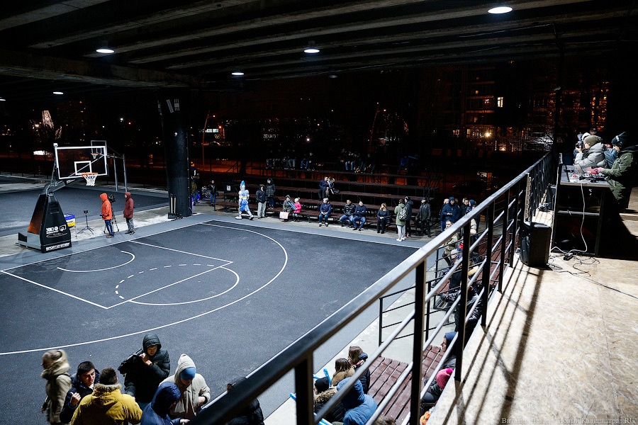 Вечером в четверг на острове Канта под эстакадным мостом открылся новый Центр уличного баскетбола (стритбола). На территории комплекса площадью 5 тыс. кв. метров расположился центральный баскетбольный корт для игры 3×3, детская площадка, воркаут зона, площадка для занятий йогой и танцами, две большие трибуны (на 110 зрителей каждая) и две малые трибуны (на 36 зрителей каждая), а также раздевалки, скамьи, урны и биотуалеты. Напомним, строить новую площадку начали в июле, обошлась она в 27 млн рублей, деньги были выделены инвестором. Курирует проект Федерация баскетбола Калининградской области.