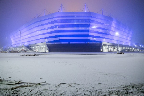 Кроме того, теперь стадион на Острове по ночам горит синим светом, напоминая инопланетный объект, — включена архитектурная подсветка. Фотокорреспондент «Нового Калининграда» Виталий Невар запечатлел светящуюся громаду стадиона в окружении снега, песка и тумана.