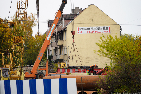 Возле попавшего под снос немецкого дома на улице Галицкого, 50-52, в Калининграде начали устанавливать строительный забор. Работы ведутся в рамках подготовки к возведению автодублёра двухъярусного моста. На территории, прилегающей к зданию, появилась строительная техника. Большинство жильцов немецкого дома, на котором по-прежнему висит растяжка с надписью «Право имеем на достойное жильё», ожидает судебных разбирательств. По их словам, на компенсацию, предложенную в связи с запланированным сносом объекта, согласились владельцы двух квартир и собственница одной из комнат. Рассмотрение исковых заявлений ожидается в ноябре. Как заявила в конце сентября глава администрации Калининграда Елена Дятлова, власти согласятся с любой утверждённой судом суммой. Подготовка к строительным работам по возведению дублёра, по её словам, займёт два месяца.