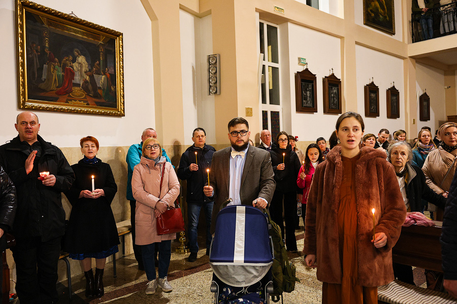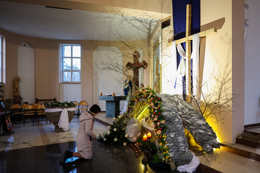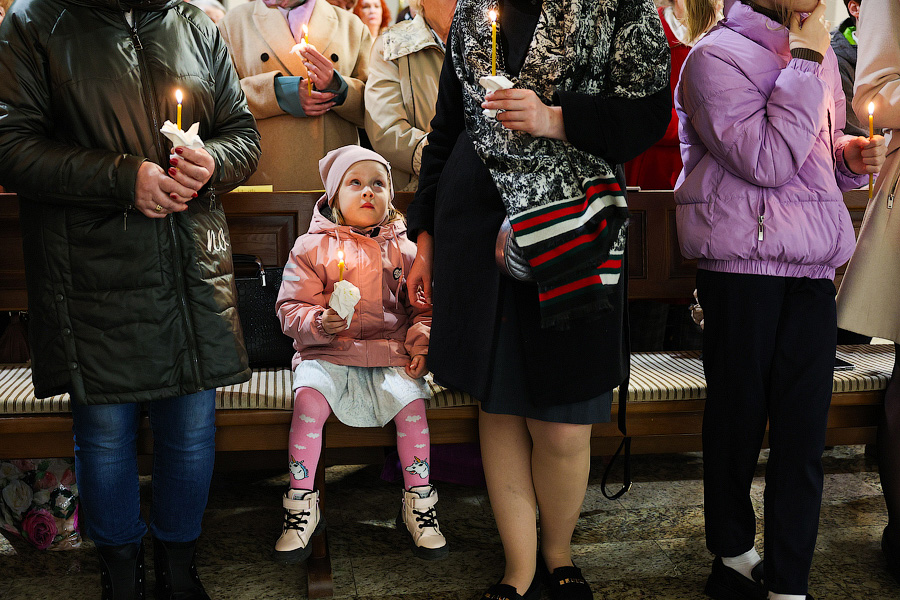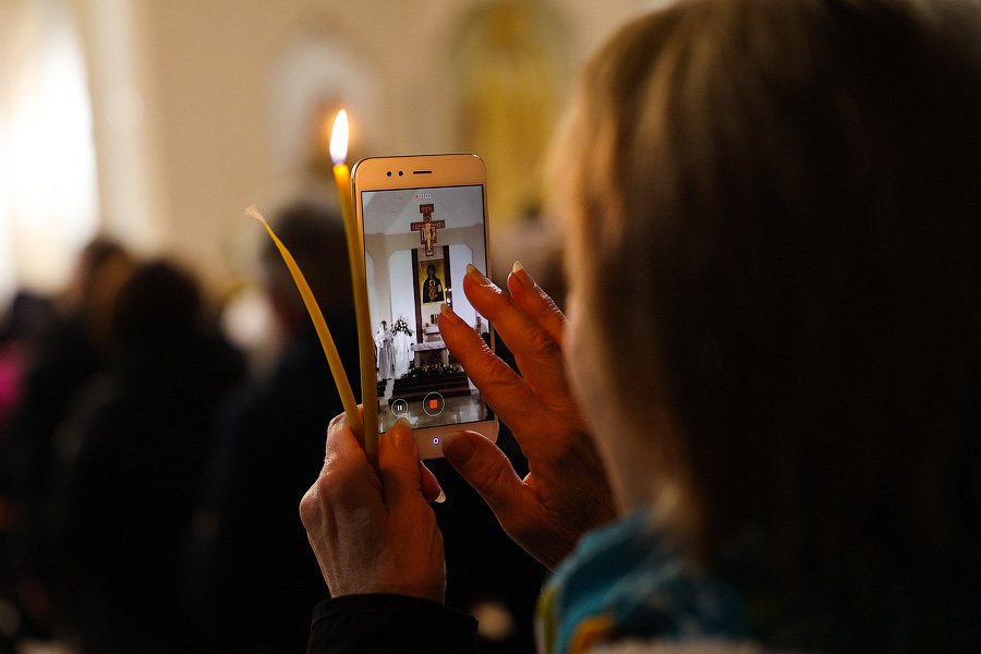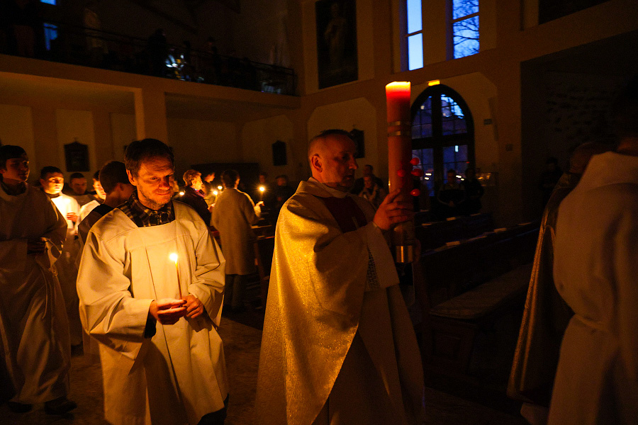 За тем, как проходило пасхальное богослужение в калининградском католическом приходе Святого Адальберта, наблюдал фотокорреспондент «Нового Калининграда» Виталий Невар.
