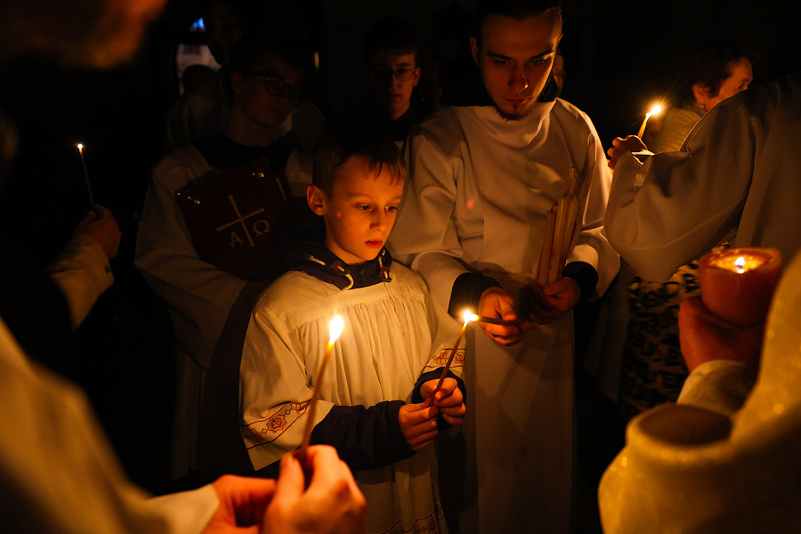 В 2023 году христианские конфессии, которые используют григорианский календарь, празднуют Пасху 9 апреля. В ночь на воскресенье в католических и протестантских приходах прошли праздничные богослужения. Согласно традиции в Воскресение Христово у храмов разводят костер, от которого зажигают большую свечу — пасхал. От нее раздают огонь прихожанам.