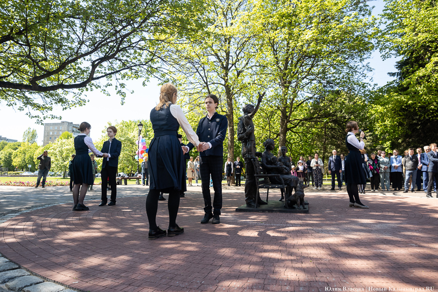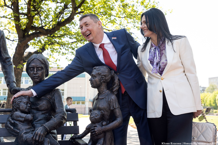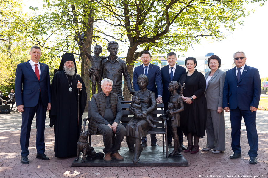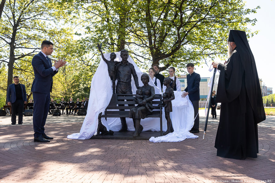 И губернатор Антон Алиханов, и депутат областного Заксобрания Евгений Верхолаз вместе с архиепископом Калининградским и Балтийским Серафимом приняли участие в открытии памятника. Верхолаз, в частности, призвал всех желающих счастливой семейной жизни гладить членов скульптурной ячейки общества согласно запросу, пояснив, что он сам, например, погладил девочку и стал отцом дочери.