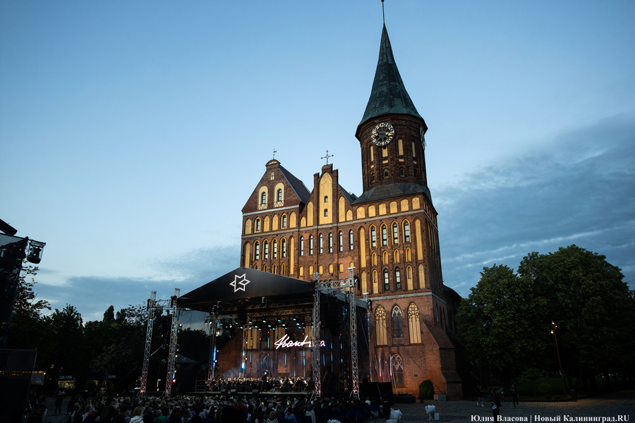 На сцене около Кафедрального собора выступили звёзды Мариинского театра — баритон Владислав Сулимский, сопрано Ирина Чурилова, меццо-сопрано Зинаида Царенко. В сопровождении Калининградского симфонического оркестра под руководством дирижёра Мариинки Кристиана Кнаппа (США) они исполнили произведения Бородина, Верди, Чайковского, Римского-Корсакова и Шостаковича.