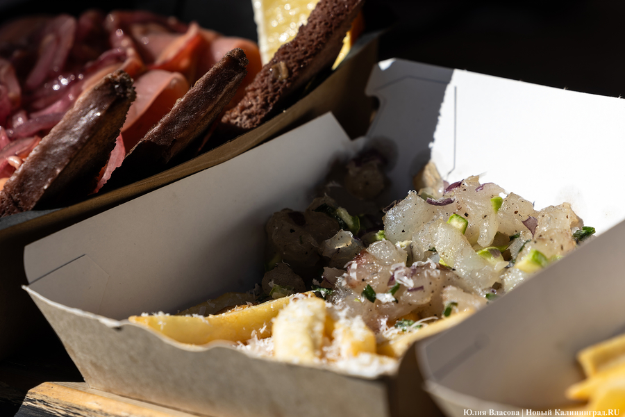 Традиционно на ярмарке у Кафедрального собора можно попробовать шашлыки, плов, «кантвейн» и трдельники. Кроме того, в этом году постоянные участники добавили новые позиции — манты в пиале, португальский и африканский фастфуд, десертные клопсы, а также моредоги с копченым лещом, строганиной и сельдью.