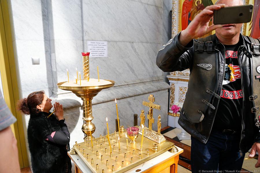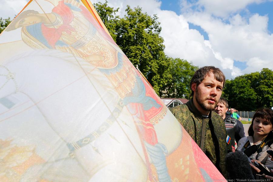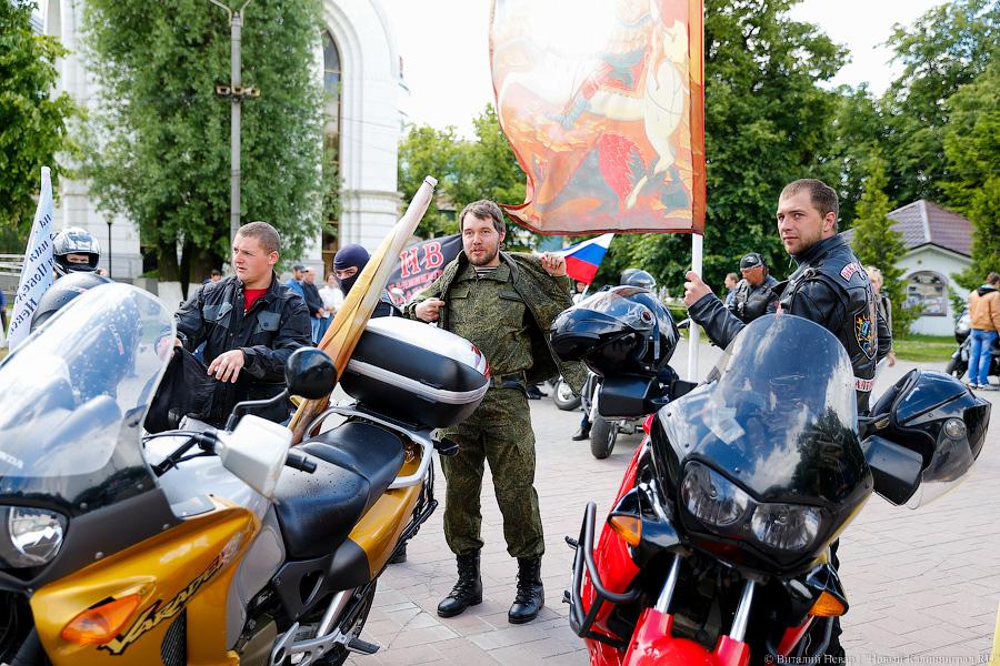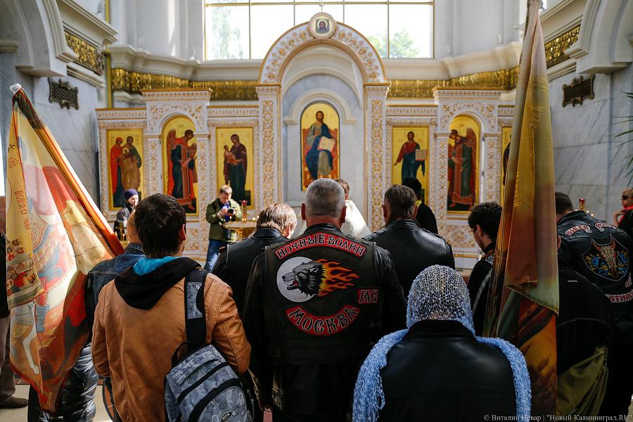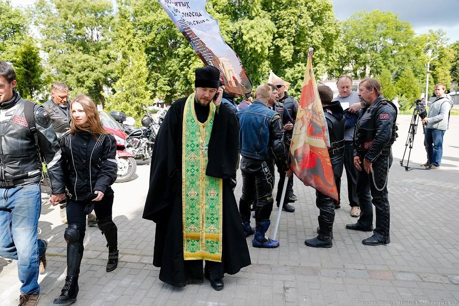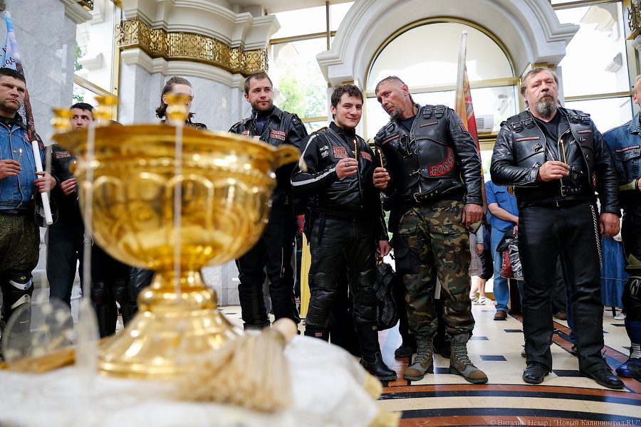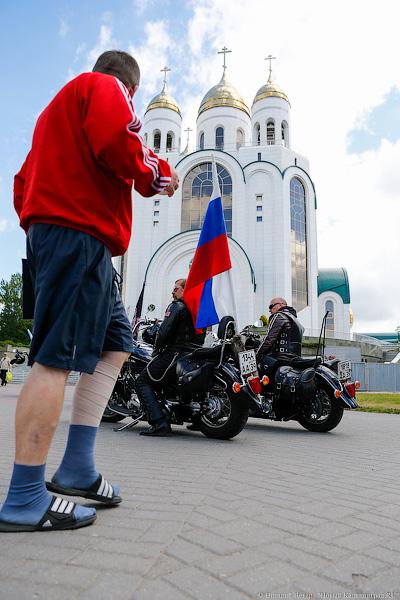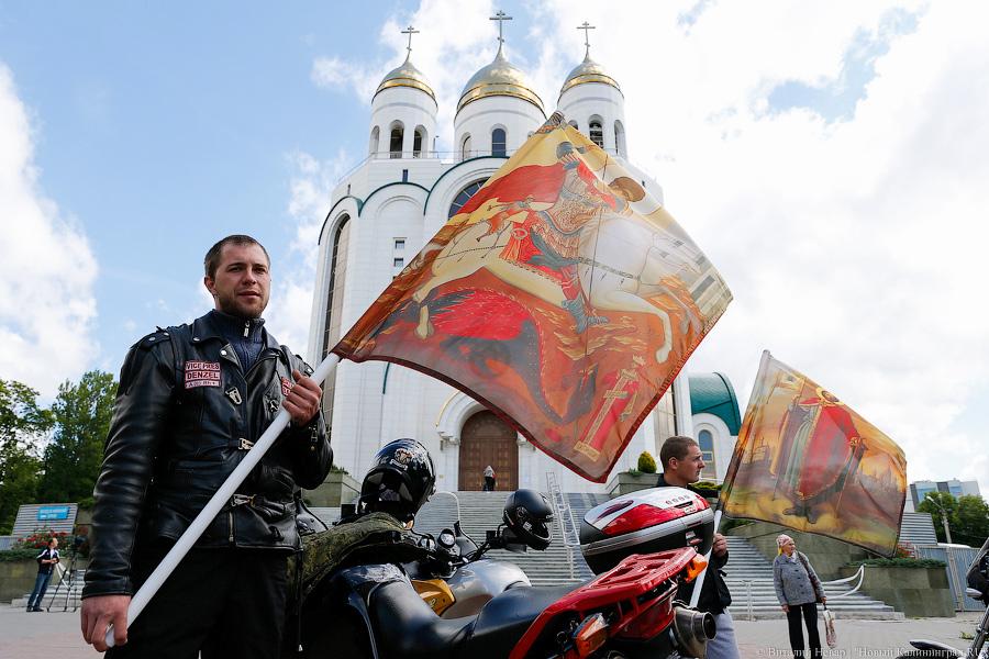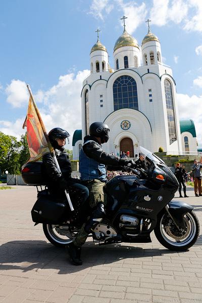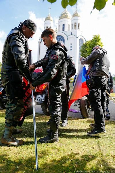 Группа балтийских и калининградских байкеров из клубов «БайкПост» и «Ночные волки» во главе с военным священником Калининградской епархии в камуфляже без опознавательных знаков отправилась вдоль границы области с флагами в честь покровителей воинства Георгия Победоносца и Александра Невского.