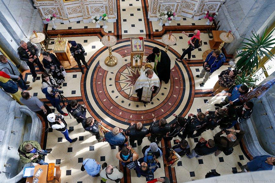 Крестный ход стартовал утром в среду от Храма Христа Спасителя в Калининграде, где прошёл молебен о путешествующих. Байкеры со священником на заднем сиденье отправились по маршруту «Железнодорожный — Черняховск — Гусев — Нестеров — Краснознаменск — Советск — Гурьевск — Балтийск». По пути следования Крестного хода на воинских мемориалах и в храмах будут отслужены панихиды по погибшим в годы Великой Отечественной войны, а также зажжены погребальные лампады. Длина маршрута Крестного хода составит 500 км.