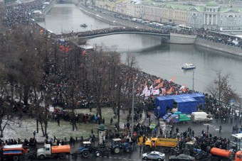 Акция оппозиции «За честные выборы» на Болотной площади в Москве 10 декабря собрала десятки тысяч людей. В частности, по официальным данным ГУМВД, к 15:30 по московскому времени на площади собрались около 20 тыс человек и еще 5 тыс - на прилегающей территории. Как передает в субботу РИА Новости, организаторы митинга утверждают, что им удалось собрать около 40 тыс человек.