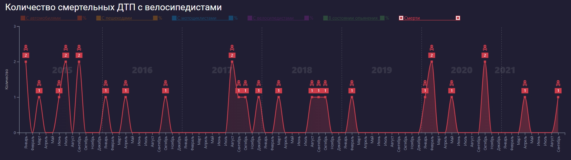 Скриншот статистики ГИБДД по ДТП с велосипедистами в Калининградской области (с 2015 года по сентябрь 2021 года)