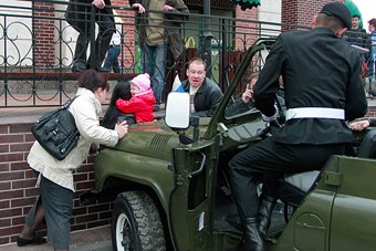 Участвовавший в параде Победы в Калининграде военный автомобиль совершил наезд на женщину с ребенком. Как передает корреспондент "Нового Калининграда.Ru" с места события, инцидент произошел у торгового центра "Европа" после окончания парада из-за неосторожности, когда водитель разрешил маленьким детям сесть в машину.