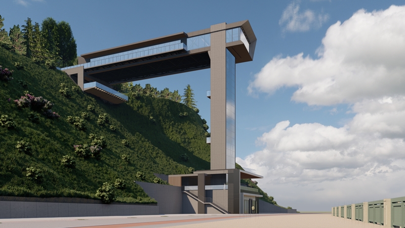 Конструкция подъёмника предполагает обустройство двух панорамных лифтов, грузоподъёмность каждого — 1600 кг. Высота от нижней до верхней площадки составляет 37 метров. К лифту будет вести мост с двумя смотровыми площадками — открытой и закрытой.
