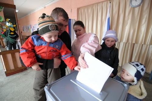 Кстати, мы работаем вдвоем с фотокорреспондентом Кириллом Клейковым. Избиратели с детьми берут их с собой в кабинку.