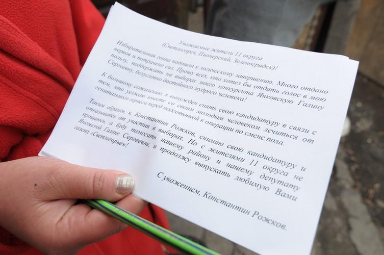 По 11 округу проходит в Думу Галина Янковская. Листовка про медицинское путешествие Константина Рожкова сделала свое черное дело.