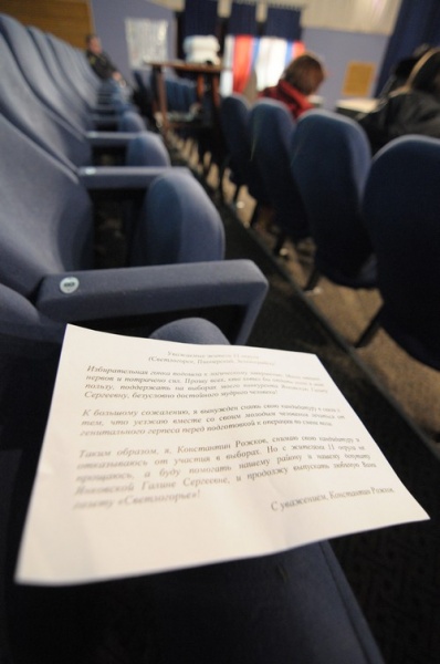 За полчаса на 135-й участок набежало 50 человек. Пытаются попасть в кабинки друг к другу и посовещаться. Председатель отгоняет нарушителей от чужих кабинок, как мух.