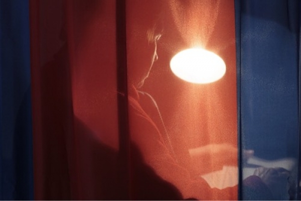 С такой теменью, как в ДК на 135-м участке, кто угодно станет слабовидящим. Женщина в очках с толстыми стеклами пытается рассмотреть бюллетень, ожидая очереди в кабинку.