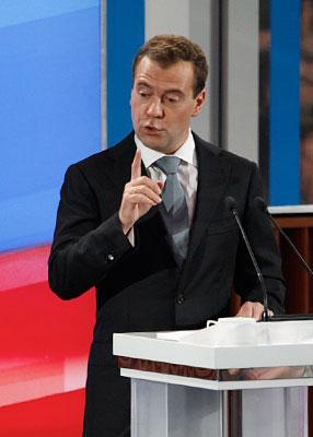"Я хотел бы остаться здравомыслящим человеком, который видит жизнь не в розовых очках" - надеется глава государства. Опять говорит, что посетил все субъекты и все территории - и полагает, что он - первый из глав страны, который так поступил. "Главное - сохранять свежесть восприятия!", - рецепт от Дмитрия Анатольевича Медведева. Качественная журналистика и возможности сети. Которая дает ему возможность получать информацию непосредственно от людей. "Там режут правду-матку! До меня никто этого не смотрел!" - грозит кому-то кулаком президент.