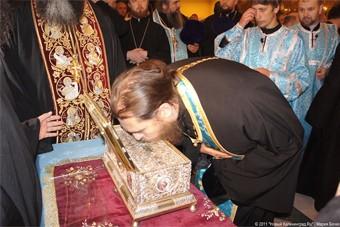 «Половину пассажиров нашего автобуса составляли священнослужители, сразу же принявшиеся хором молиться и петь псалмы. Другая половина - журналисты - почтительно слушали, - сообщает газета. - Самолет с драгоценной реликвией на борту многочисленные наблюдатели (кроме светского и церковного руководства региона на летном поле скопилось еще множество народу рангом помельче) засекли еще на подлете. Обнаружить воздушный лайнер помогло исходившее от него яркое сияние, природа которого для меня осталась загадкой. Возможно, конечно, дело в прожекторах, но и исключать нематериальные причины тоже, пожалуй, не стоит».