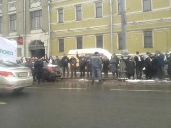 Одновременно с акцией «Белый круг» партия «Яблоко» проводит автопробег по Садовому кольцу. Сколько автомобилей в нем принимает участие, неизвестно.
