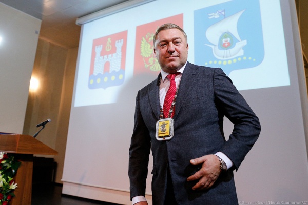 Появляется стремительный Алиханов, толпа перетекает в зал. Его сцена украшена большим экраном, на котором — городские праздники, счастливые дети, красивые виды. Вот и «юбиляр»: экранный Ярошук возлагает цветы и крестится на памятник 1200 гвардейцам. Почти левитановским голосом ведущий объявляет о начале церемонии; трое почему-то морпехов вносят флаг городского округа. «Стой! Нале-во», — отчетливо доносится со сцены. После них на нее вызывают главу горсовета Андрея Кропоткина, тот напоминает про результаты тайного голосования, затем Александр Ярошук приносит присягу, в очередной раз поклявшись действовать в интересах и на благо жителей. На него надевают «мэрскую» цепь с янтарем и гербом Калининграда, Ярошук напоминает, что проходит «волнительную процедуру инаугурации» в третий раз. И благодарит «за оказанное доверие» сначала губернатора Алиханова, потом — правительство Калининградской области, и затем уже тех, кто его непосредственно избирал — депутатов горсовета. Именно их общими усилиями областной центр лишился прямых выборов главы. «Меньше потратил сил, нервов и средств», — скажет чуть позже глава журналистам. И добавит, что в его работе ничего не изменится.