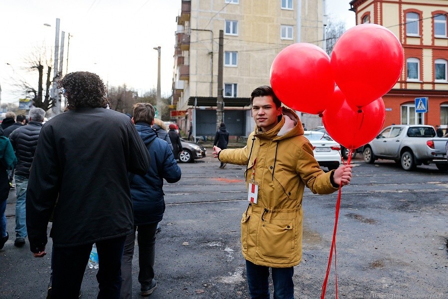 Неприятности начали преследовать калининградских сторонников Навального за несколько дней до его визита в Калининград. В начале недели в региональный штаб политика в очередной раз с обысками пришли сотрудники центра «Э», а утром накануне приезда Алексея Навального волонтеры жаловались, что у них изъяли агитационные материалы. Между двумя этими событиями произошло еще одно — которое чуть было не поставило под угрозу проведение встречи Навального с жителями Калининграда — директор универсама «Московский» внезапно расторгла договор аренды территории, на которой должна была состояться акция. Впрочем, эта ситуация пошла сторонникам оппозиционера только на пользу — небольшое пространство в «колодце» и территория возле универмага вряд ли бы вместили всех желающих. На встречу с Навальным, как и предполагалось, пришло большое количество школьников и студентов. Людей старшего возраста было также много, некоторые из них пришли с маленькими детьми. В руках у них были красные шары и флаги России.