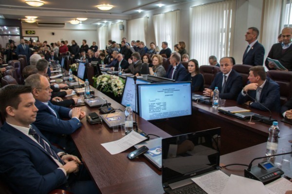 Зампредседателя горсовета Андрей Шумилин (он — докладчик) обещает дать слово всем желающим. «Обеспечьте местами», — раздается откуда-то из толпы в конце зала; шум, гвалт. «Сейчас охрану вызовем [...], выведем из зала!», — быстро, но в общем-то беззлобно реагирует тот. Глава Совета Андрей Кропоткин демонстрирует спокойствие и задумчиво теребит подбородок. Слово берет глава региональной ЛДПР и депутат облдумы Евгений Мишин (он тоже в числе тех, кто на ногах) и заявляет просьбу перенести слушания в другое место (и на другое время), потому что не все собравшиеся имеют «равный доступ» в зал, да и день будний. Его выпад искусно купируют: мол, слушания уже начались, «ваши предложения будут занесены в протокол». Впоследствии тема будет звучать рефреном, толпа у входа — недовольно роптать. А ведь казалось бы: соцсети бурлят на протяжении последних недель, чего проще — предугадать этот аншлаг; но нет. «Уважайте мнение жителей города!» — раздается вновь и вновь. «Уважаемые граждане, вы пришли на публичные слушания», — миролюбиво говорит Кропоткин. «Которые отвратительно организованы!» — парируют ему. Шумилин меж тем потихоньку бубнит, зачитывая вносимые в устав изменения: «Дополнить словами: «градостроительный», etc. Звучат еще несколько обращений с просьбой перенести действо в более приспособленное помещение — их обещают «рассмотреть на комиссии». Это выглядит издевательски, потому что комиссия будет заседать уже после того, как слушания пройдут — но бодрому докладчику все легко сходит с рук.