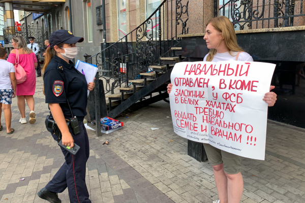 В Калининграде, как и во многих других городах России, в течение двух дней проходили пикеты в поддержку госпитализированного оппозиционера Алексея Навального. В пятницу пикетирующих, сменявших друг друга, пыталась разогнать полиция. Ссылаясь в том числе на областное «коронавирусное постановление», полицейский кричал в мегафон: «Мероприятие не санкционировано, требую его прекратить и разойтись».