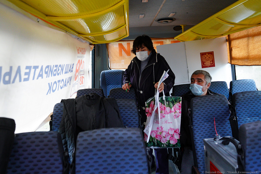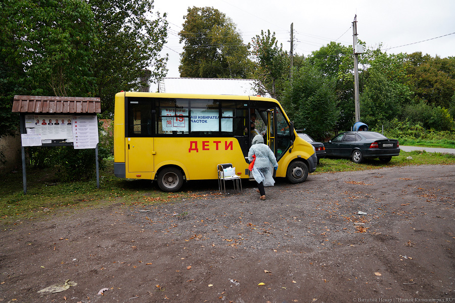 17 и 18 сентября на территории Калининградской области работало более 100 точек для голосования в автобусах, палатках, пристройках к магазинам, спортзалах, зданиях ДК, заводских помещениях и прочих на скорую руку приспособленных местах. Сделано это было в поселках, «где отсутствуют помещения для голосования и транспортное сообщение с которыми затруднено». Услышав о нововведении, калининградцы немедленно начали шутить в соцсетях про «пеньки, накрытые палаткой». Нововведение широко не афишировалось, информация о нем распространялась через муниципальные газеты и поквартирный обход. Даже на сайтах облизбиркома и ТИКов графики работы точек не публиковали. «Новый Калининград», располагая их списком, наугад выбрал несколько населенных пунктов и оценил электоральную новинку.