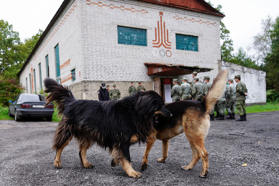 В труднодоступности поселка Рябиновка того же Гурьевского района сомневаться уже не приходится. Тут даже автомобиль не сильно спасает: дорогу к поселку словно бомбила накануне вражеская авиация. Хотя ничего вражеского к Рябиновке конечно не подберется: он весь — сплошная воинская часть.