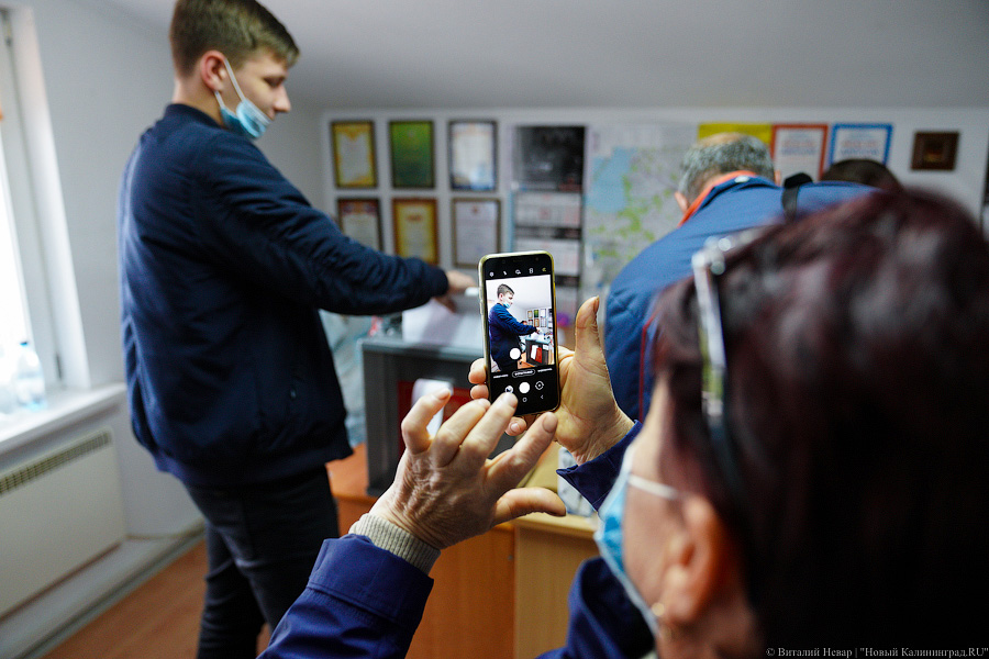 В поселке Прибрежное Гурьевского района участок на скорую руку организовали в офисном помещении склада металлоизделий. В населенном пункте с «затрудненным транспортным сообщением» это прямо рядом с остановкой городского транспорта. Журналистам на складе совсем не рады и членов комиссии можно понять. «Кабинку для голосования» здесь решили изобразить небольшой ширмой, почему-то развернутой так, чтобы процесс волеизъявления был отлично виден сидящим за спиной избирателя людям. «Это оборудованная кабина. Тайна голосования соблюдена», — гипнотизируют себя, журналистов и избирателей члены комиссии.