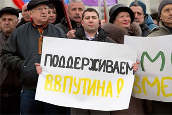 — Ты говоришь, что это совпадает с общим движением к консолидации вокруг национального лидера. Насколько это поведение рационально? Или всё же более эмоциональное, подверженное информационному воздействию, несомненно, имеющему место? До такой степени пропагандистскими федеральные СМИ не были давно, может быть — вообще никогда с момента распада Советского Союза. Отсутствие рационального кажется ещё и потому, что результата-то нет, есть факт изменения государственного статуса, есть два новых субъекта, но люди там не стали по утрам манну небесную кушать и нектар попивать, процесс пока находится в стадии развития.