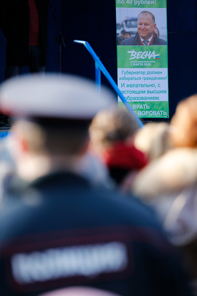 После прочтения одного из стихотворений памяти Немцова наконец озвучили резолюцию марша «Весна» в Калининграде. В ней создатели выражают недовольство ситуацией в стране и действиями власти, следствием которых стало резкое подорожание продуктов, и требуют провести открытое расследование убийства Немцова. А также прекратить военные действия на Украине и немедленно освободить политических заключенных. Затем отменить санкции на продукты в отношении стран ЕС и конфискацию пенсионных накоплений. Предоставить возможность проводить акции протестов в центре Калининграда. «Прекратить через СМИ нагнетать протест в обществе. Дать безусловный допуск представителей оппозиционных партий к участию в выборах всех уровней. Предоставление оппозиционным организациям города и области не менее 1 часа эфирного времени в неделю на местном ТВ», — окончил перечислять Шадрин. Резолюция была принята поднятием рук.