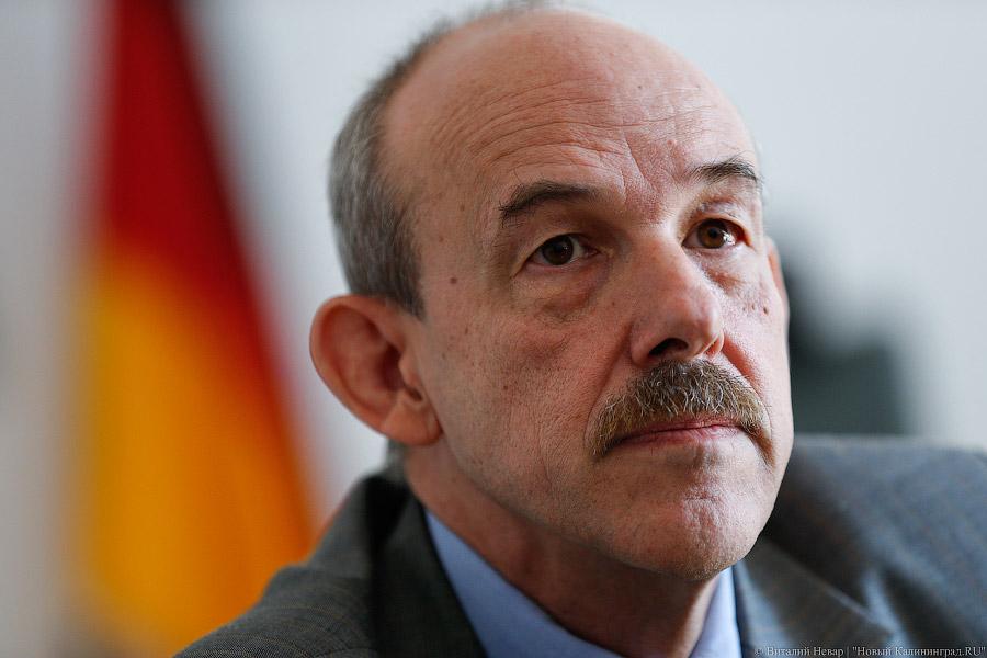 — Процитирую вашего предшественника на посту генконсула, господина Рольфа Фридриха Краузе: «Отношение немецкой экономики к инвестициям в России, к сожалению, за последние годы изменилось не в лучшую сторону». На следующей неделе состоится традиционное мероприятие — Октоберфест немецкой экономики в Калининграде. Там будут пить за здравие или за упокой?— Мы в принципе пьём только за хорошее. Конечно, мы выпьем за здравие, за положительные тенденции в экономических взаимоотношениях. Понято, что сегодня внешние, рамочные условия весьма сложные, это ясно каждому.