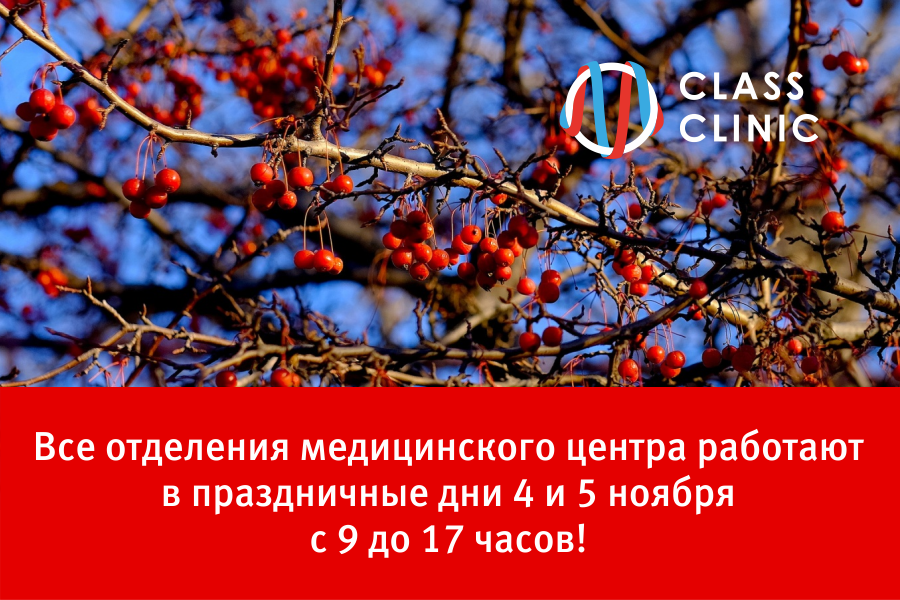 Медцентр Class Clinic работает в праздничные дни 4 и 5 ноября!