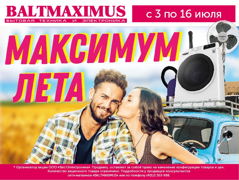 Проводите много времени на даче? Планируете переезд в июле? Ищете качественный подарок по разумной цене? Или просто решили обновить технику летом? Тогда вам — в Baltmaximus. С 3 по 16 июля вас ждут скидки до 40% на различные категории товаров.
