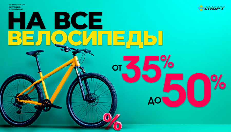 Начинайте год с больших амбиций, а «Планета Спорт» врывается в него с грандиозными скидками! От 35% до 50% на все велосипеды!