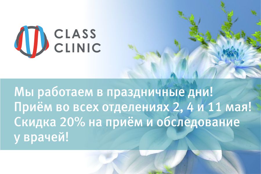 Медцентр «Class Clinic» работает на праздниках: скидка 20% на приём врачей