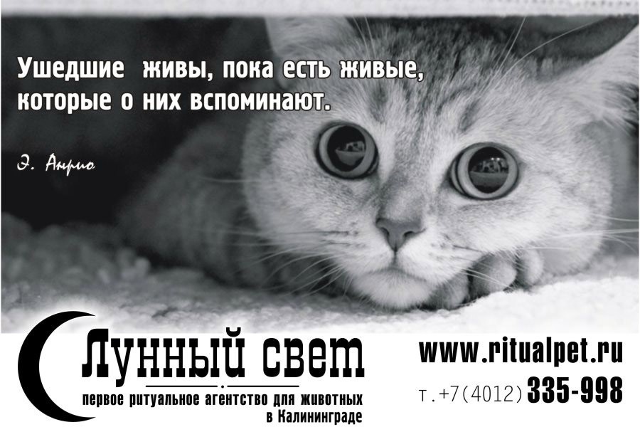Между тем в Калининграде открылось первое ритуальное агентство для животных «Лунный свет», которое оказывает ритуальные услуги для усопших животных.