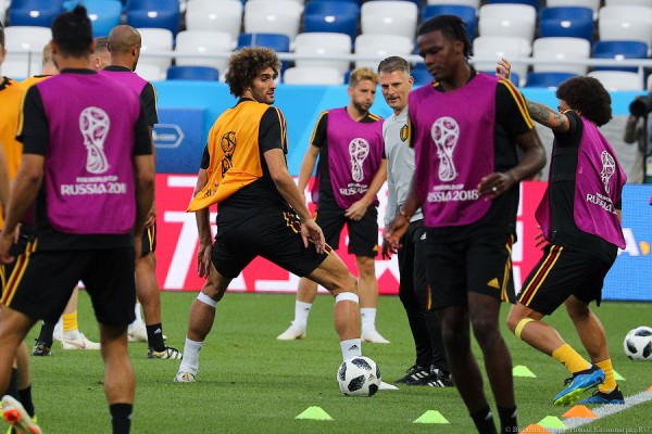 В среду, 27 июня, накануне игры против сборной Англии национальная команда Бельгии провела предматчевую тренировку на стадионе «Калининград». Обе команды, впрочем, уже решили задачу выхода в плей-офф, и матч в Калининграде поможет лишь выявить, кто из них займет первую строчку в группе «G».