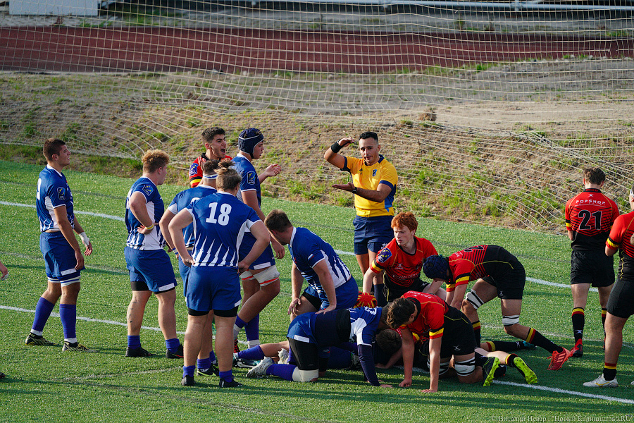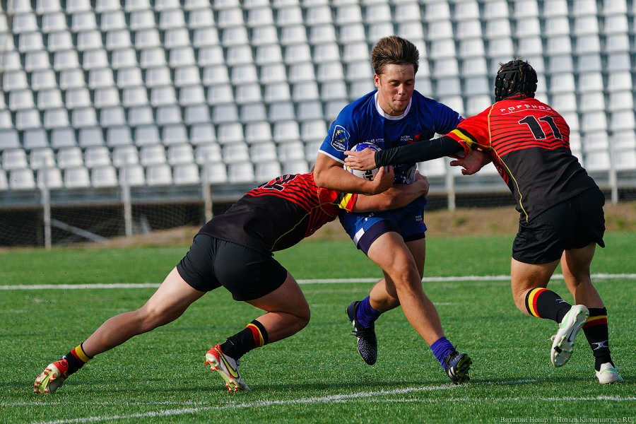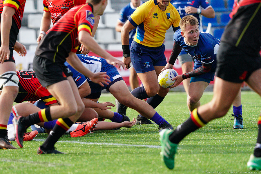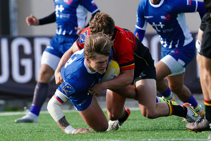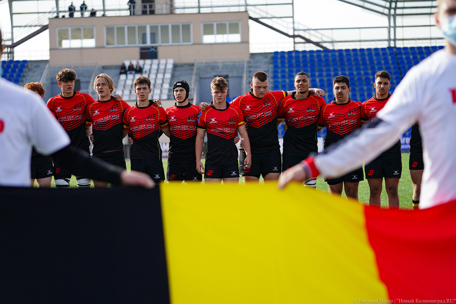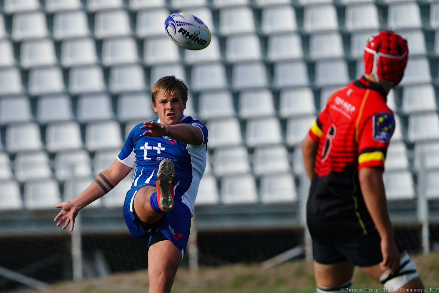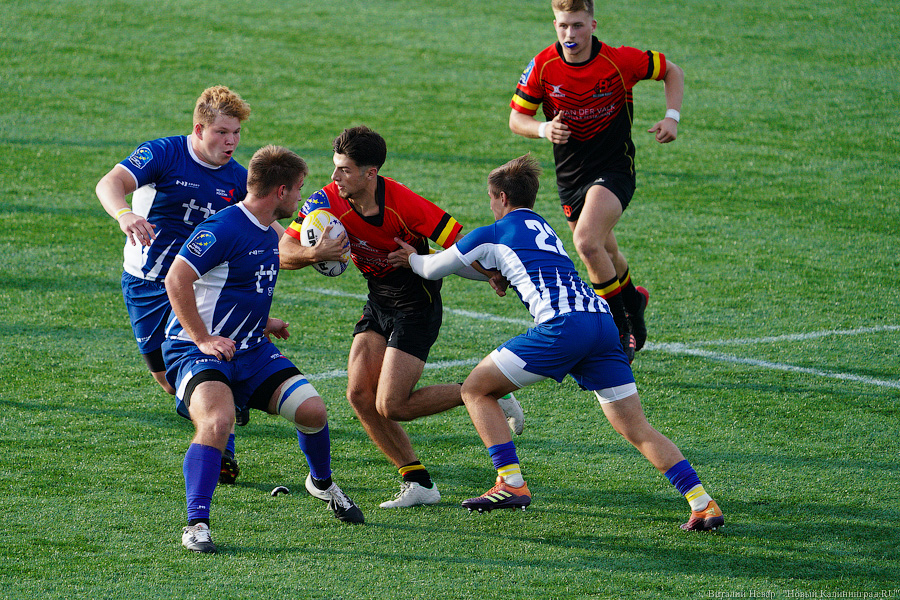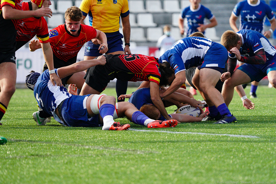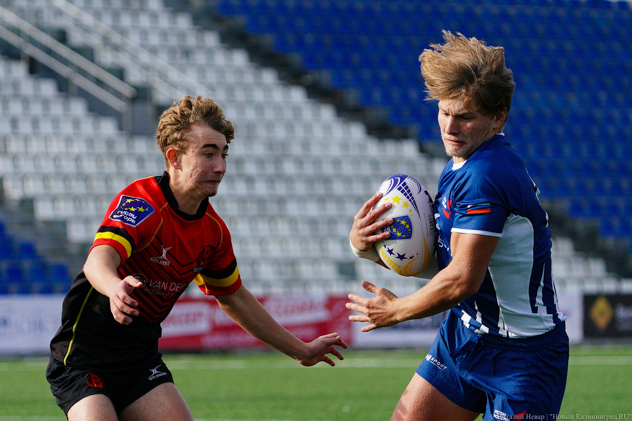 На чемпионате Европы по регби U-18 в 2021 году российская сборная проиграла в матче против национальной команды Бельгии. Матч, проходивший в воскресенье, 3 октября, на стадионе «Сельма» завершился поражением нашей команды со счётом 10:21. Теперь российской сборной предстоит бороться только за пятое место. Команда Бельгии оправляется в полуфинал. За игрой наблюдал фотокорреспондент «Нового Калининграда» Виталий Невар.