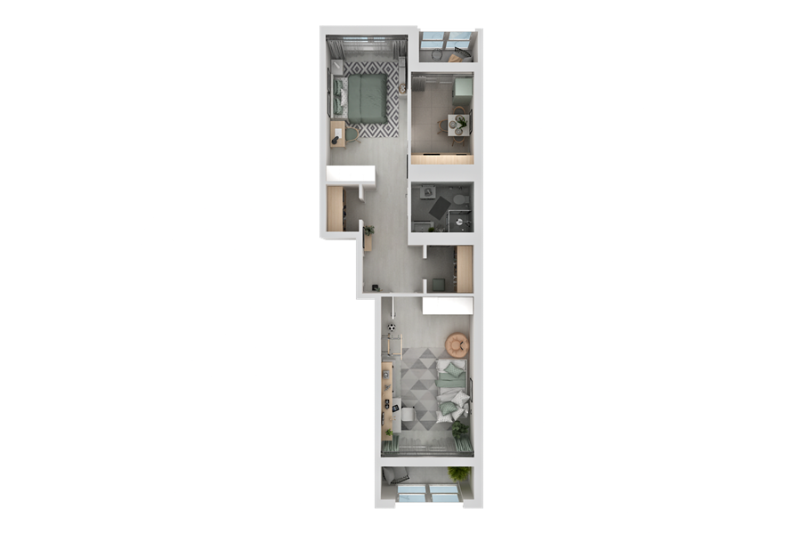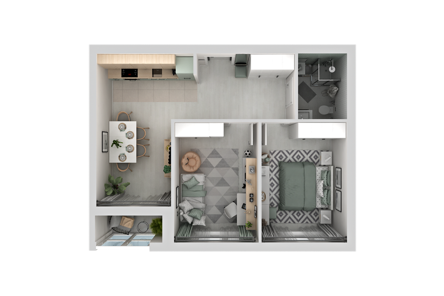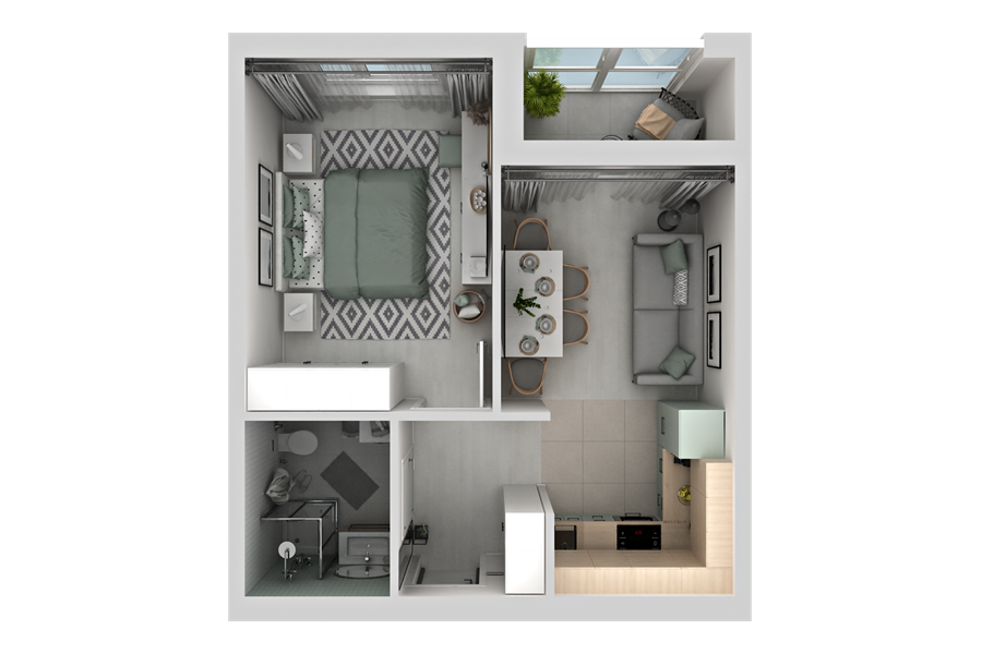 Квартиры здесь имеют площадь от 28 до 62 квадратных метров и продуманные планировки. Вокруг домов создаются уютные зоны для жизни: прогулочные дорожки, зеленые зоны, места для спорта и отдыха, современные детские площадки без автомобилей.