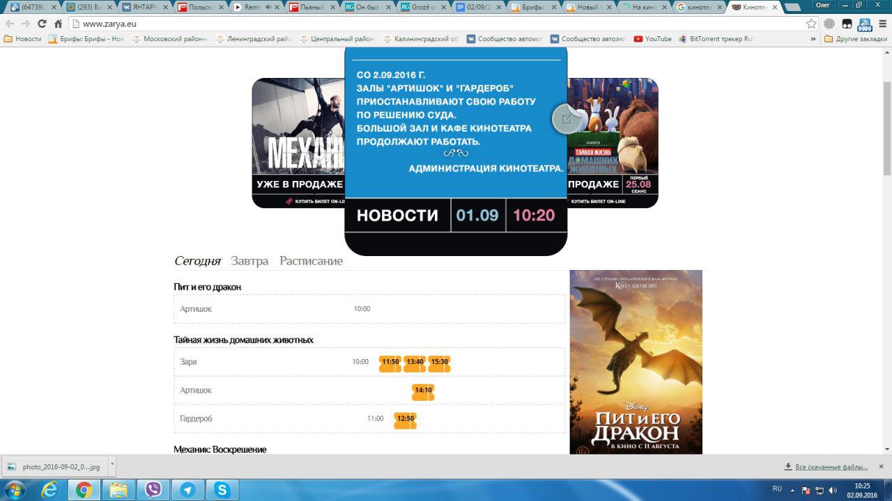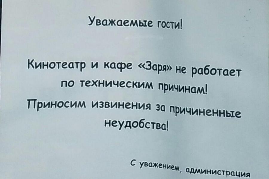 Главный вход в здание комплекса «Заря — Универсал» закрыт и опечатан изнутри, передаёт корреспондент «Нового Калининграда.Ru» в пятницу. На дверях висит объявление о том, что кинотеатр и кафе не работают «по техническим причинам». Во внутреннем дворе собрались сотрудники кафе, однако они прокомментировать происходящее не могут. На телефонные звонки в «Заре» никто не отвечает.