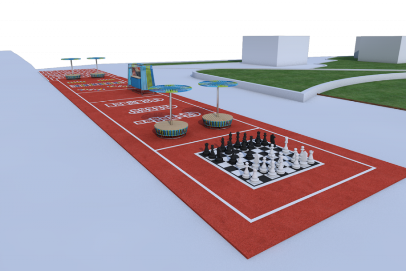 По проекту реконструкции этой части променада в этом месте должны появиться уличные шахматы, несколько видов классиков, запутанный лабиринт, твистер, игра «зеркальное отражение». Рядом с игровым полем планируется разместить торговое место по продаже безалкогольных напитков, а также зонты от солнца и деревянные скамейки.