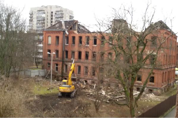 В четверг на ул. Томской начался снос кирпичного здания довоенной постройки. Об этом корреспонденту «Нового Калининграда» сообщил очевидец.