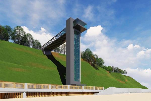 Глава администрации Светлогорска Андрей Толмачев опубликовал на своей странице в Facebook* эскизы лифтового подъёмника, который планируют построить у Театра эстрады
