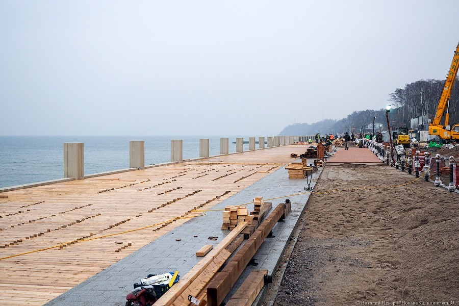 Напомним, в июле 2016 года правительство Калининградской области расторгло контракт с предыдущим подрядчиком, почти на год задержавшим завершение строительства. После нового конкурса достраивать променад взялась компания из Санкт-Петербурга «Геоизол». Согласно условиям нового контракта стоимостью более 1,4 млрд рублей, все работы должны были быть завершены еще к марту 2018 года. В мае подрядчик заверил, что закончит объект в середине лета, однако этого не произошло, несмотря на отсутствие штормов. В конце октября депутат областной Думы Александр Орехов заявил, что строительство променада оказалось под угрозой из-за того, что его проект был отправлен на доработку, а рабочие остались без денег.